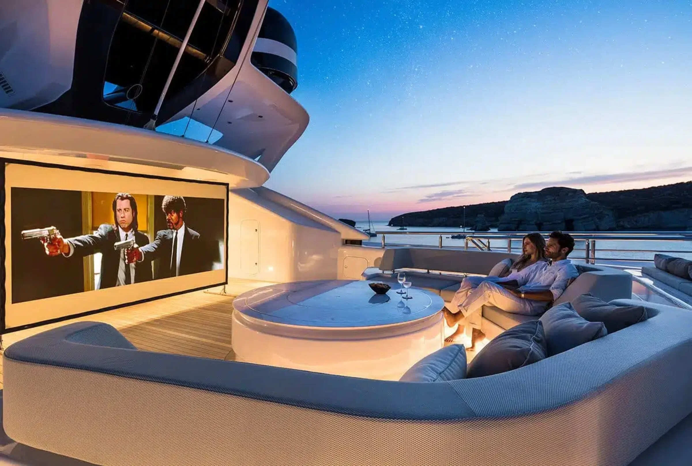 Luxury Feature: Expansive spa, cinema, infinity Jacuzzi, and a water toy fleet including e-foils and a limo tender.