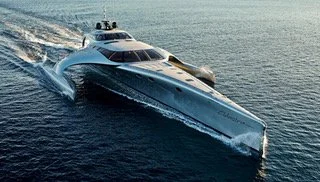 With its ultra-slender trimaran form, Adastra looks more Star Trek than Saint-Tropez.